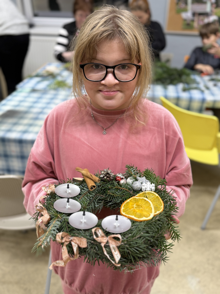 První dvě dílny byly věnované adventním věncům. Účastníci si mohli vytvořit jak klasické věnce na svíčky, tak i dekorativní věnce určené k zavěšení na dveře. Práce s přírodními materiály, zelení a ozdobami navodila pravou vánoční náladu hned na začátku adventu.