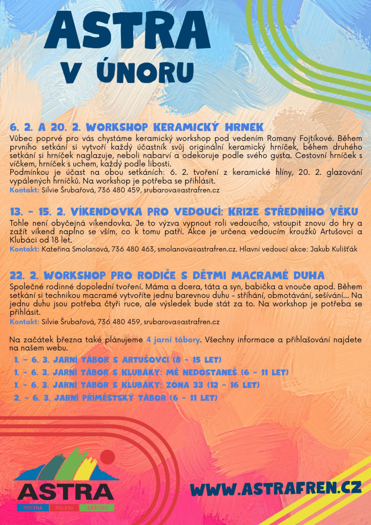 Únor je sice nejkratší měsíc v roce, ale v Astře to rozhodně nepoznáte – program máme nabitý kreativitou!